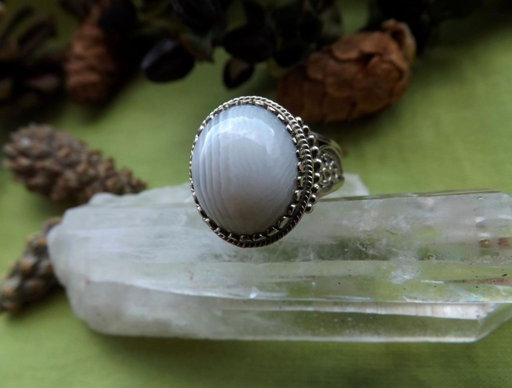 В настоящее время белый агат используют для декоративных целей. Несмотря на то, что камень полудрагоценный, он всегда дорого смотрится в украшениях. Он имеет престижный вид, а при правильном обрамлении способен потягаться со своими драгоценными «коллегами».