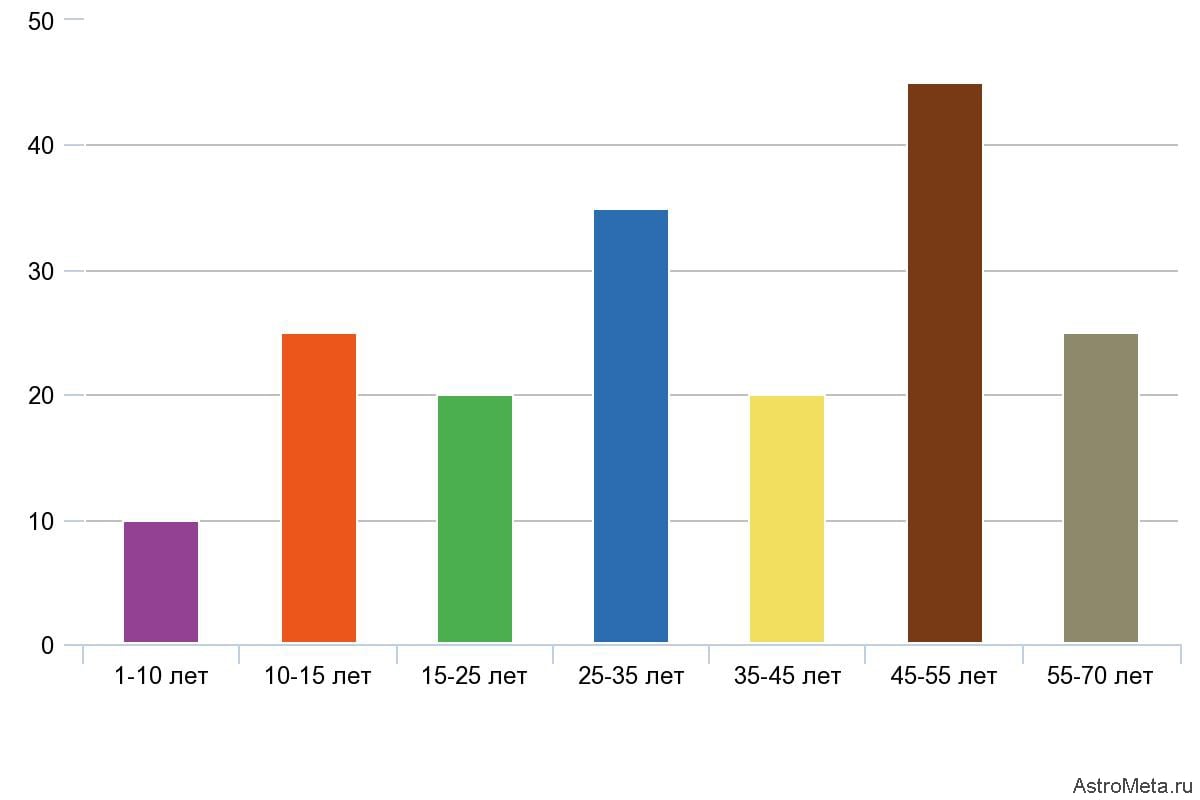 На данном графике обозначены возрастные промежутки, характерные периодами жизненной активности обладателя имени Улан. В разных промежутках активность может быть, как и большей, так и меньшей.