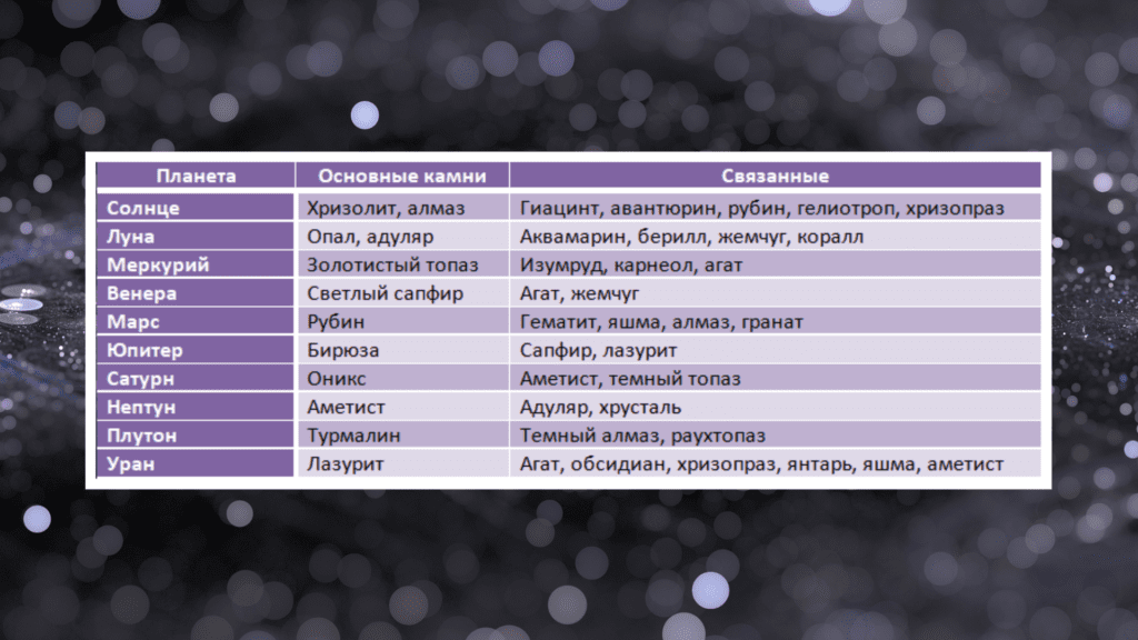 Древние и современные астрологи утверждают, что влияние камней на здоровье и судьбу человека зависит от расположения планет на небосводе. Наиболее благоприятными являются камни, связанные с планетой, которая находится в натальной карте человека в момент его рождения и астрологически господствует в его судьбе.