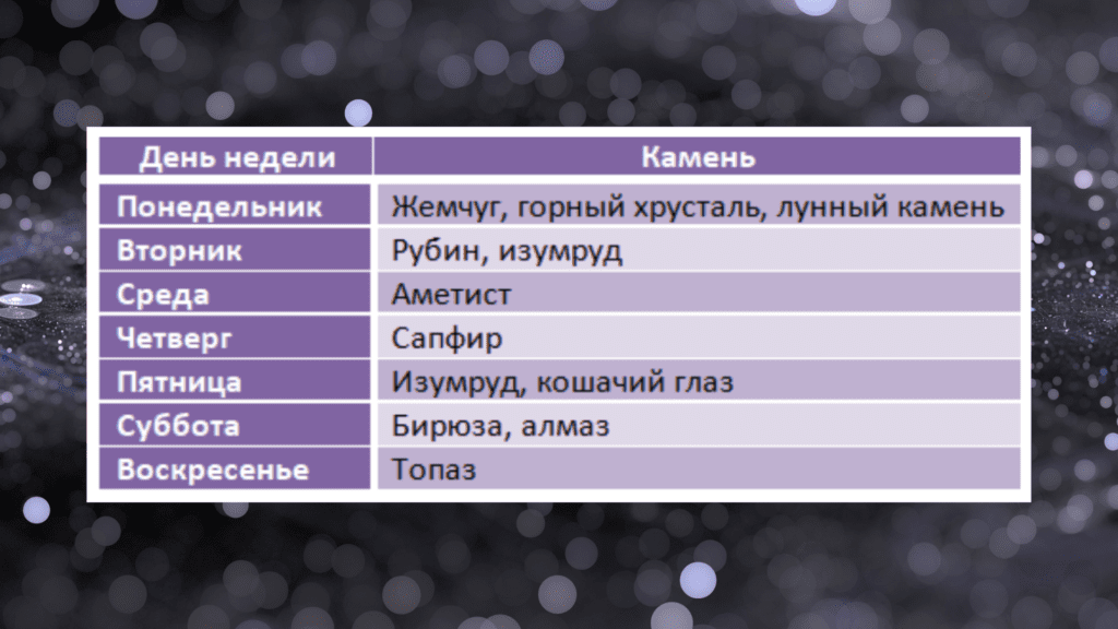 Также человек может выбрать свой камень в зависимости от дня недели, в который он родился: