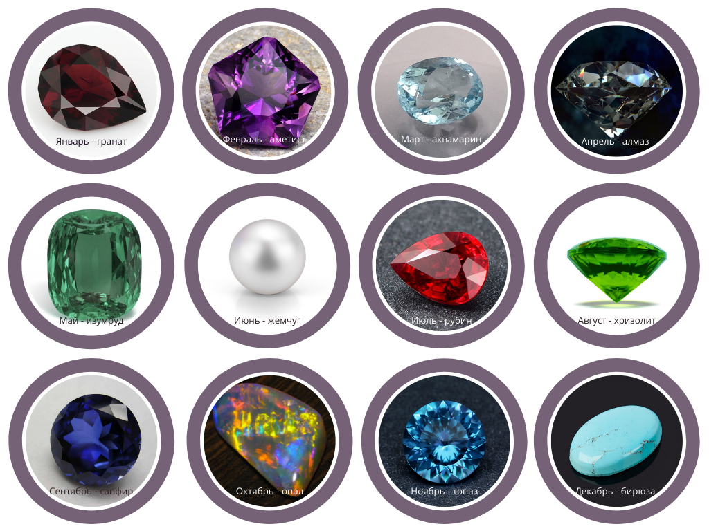 Каждому месяцу соответствуют свои камни. В это время их свойства достигают особой силы, камень до конца раскрывает себя и щедро предлагает свои дары человеку.