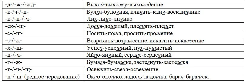 Согласные -г-/-ж-/-з-, -т-/-ч-/-щ-, -д-/-ж-/жд-, -б-/-бл-, -в-/вл- в корне слова