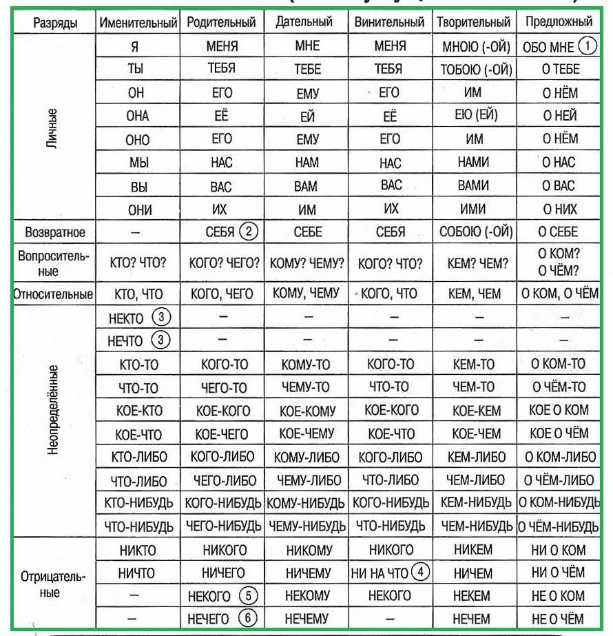Ключевые слова конспекта: склонение местоимений по типам существительного, прилагательного и числительного,