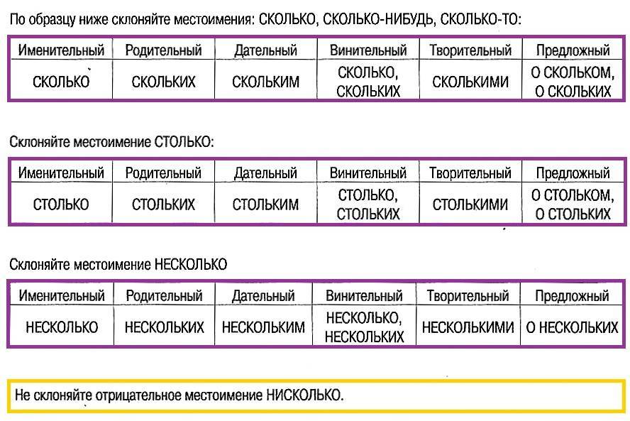 Ещё следовало бы отметить, что в местоимении сколько при склонении ударение сохраняется на первом, а не на последнем слоге, как думает большинство людей.
