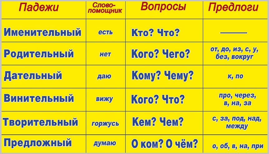 Падежи с вопросами и предлогами